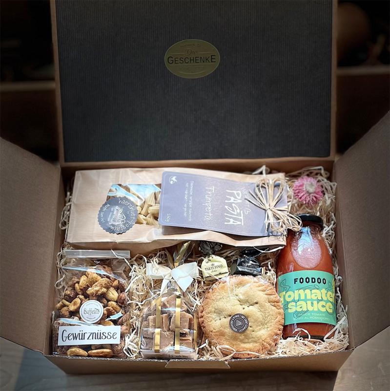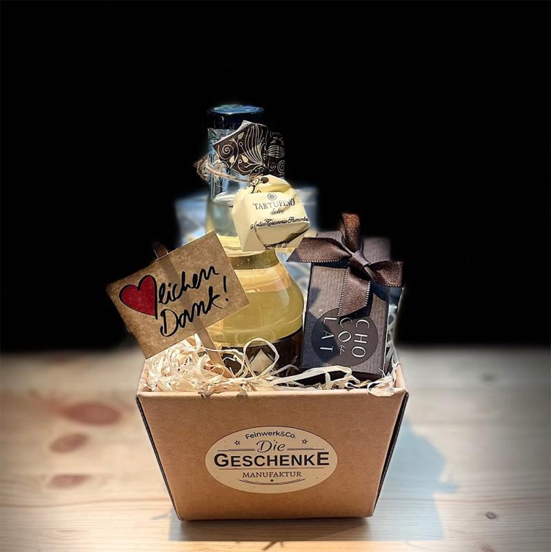 Du suchst ein stilvolles Geschenk? Als Feinwerk&Co. verkaufen wir kreative Geschenkkörbe und Geschenkboxen mit leckeren Lebensmitteln, Getränken und schönen Dingen.