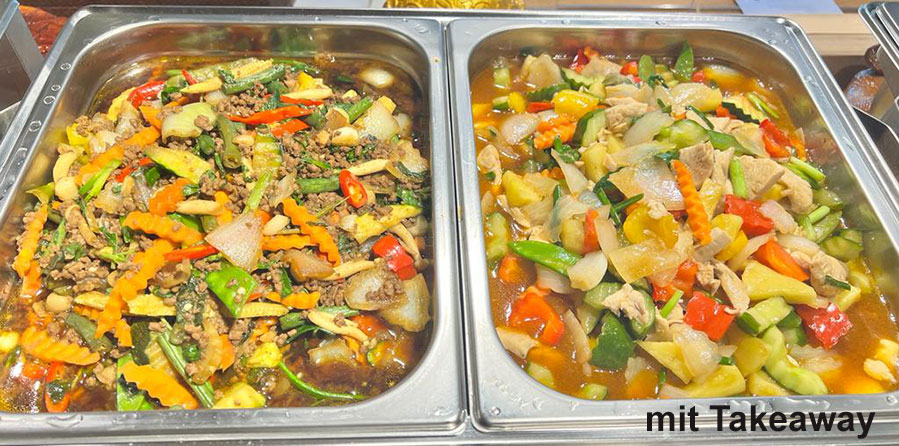 Geniessen Sie unsere thailändische Küche auch als Take Away. Täglich sind 8-10 Menüs erhältich, für je 12 Fr. pro Portion. Bei uns kann man aber nicht nur preiswert essen, man kann auch gemütlich sitzen und unsere thailändischen Köstlichkeiten geniessen. Ab 30 Fr. Bestellwert bieten wir auch Lieferungen an, exkl. Lieferungskosten (Post).