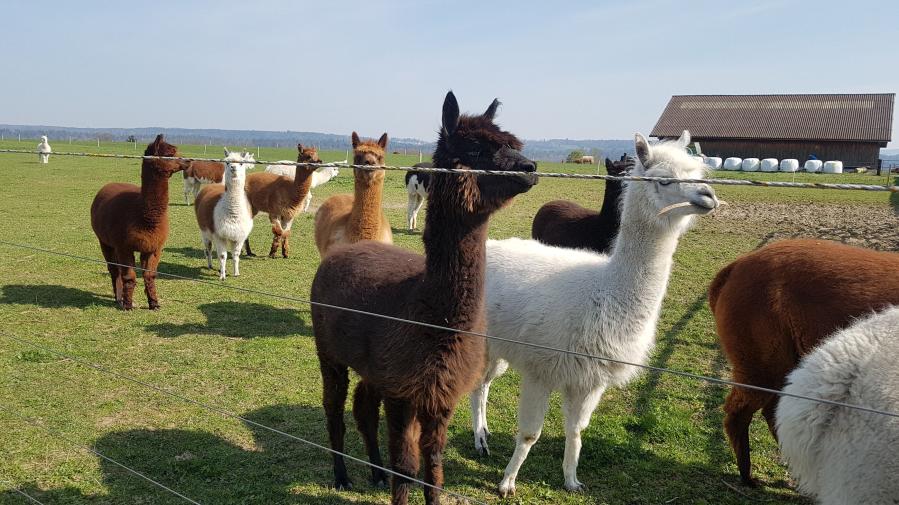 Mit dem Obstanbau produzieren wir über 30 verschiedene Obstsorten, welche Sie je nach Saison bei uns im Hofladen kaufen können. Unter anderem produzieren wir die bekannten Sorten Boskop, Rubinette und Golden. In unserem Hofladen finden Sie auch unseren köstlichen pasteurisierten Apfelsaft, der ohne Konservierungsstoffe auskommt. Unser Hofladen hat 365 Tage im Jahr geöffnet. Hier finden Sie eine grosse Auswahl an Früchten, Gemüsen, Glacés, Milch- und Fleischprodukte.Entfliehen Sie der Hektik des Alltags und geniessen Sie ein besonderes Erlebnis mit unseren Alpakas. Lassen Sie sich vom Tempo der Tiere treiben.