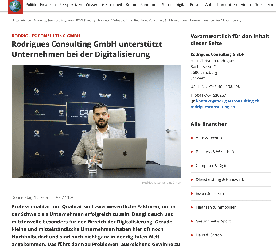 Die Firma Rodrigues Consulting GmbH aus Lenzburg im Kanton Aargau ist auf Marketing und Digitalisierung spezialisiert.